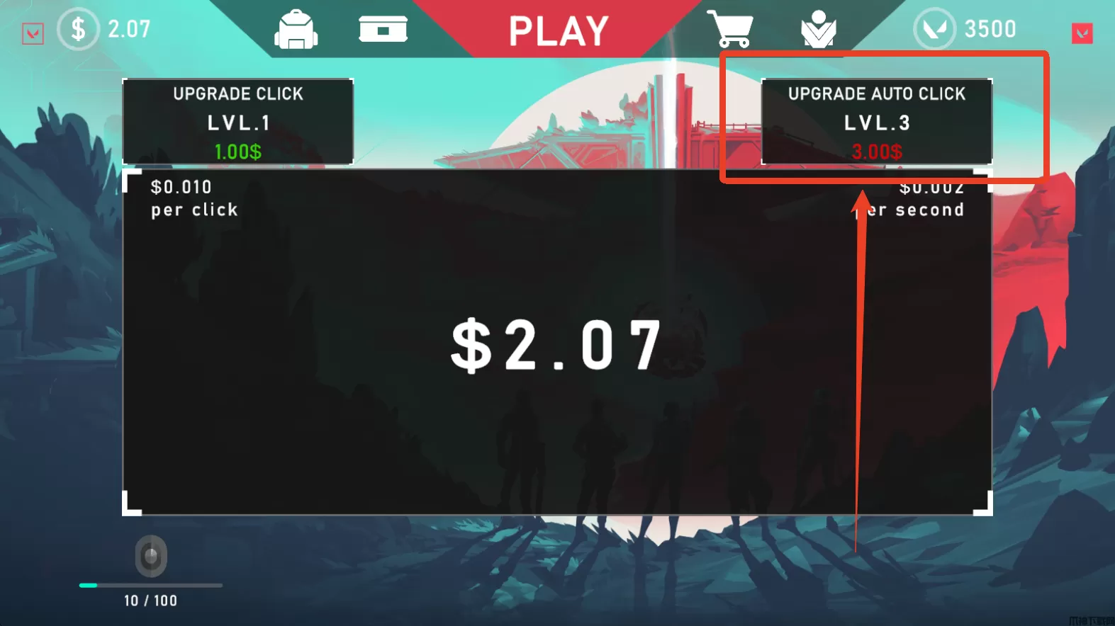 在无畏契约开箱模拟器中如果你觉得点击获得金钱很累,那么就可以升级金钱获取途径的等级,升级之后每秒都会获得相应的金钱,不用手动点击,所以大家前面可以先多点击一会获得大量的钱,然后再进行升级,挂机也能自动增加。感兴趣的玩家欢迎前来下载!
