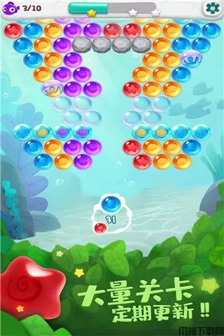 单机泡泡龙是一款很好玩经典的消除类手游。相信很多小伙伴都有玩过泡泡龙游戏吧。本次小编分享的这款单机泡泡龙经典版手机版也是同样的游戏玩法,但是不一样的就是游戏的背景改编了,还有游戏的画风也变得更加有意思了,变成了Q萌可爱风格,但是玩法方面同样的消除游戏规则,熟悉地道的玩法,关卡丰富多样,闯关乐趣无穷,在这款单机泡泡龙游戏中,你要做的就是消除泡泡来解救被困的海洋生物,而且本次小编分享的这款为单机版,用户就算是没有网络也可以游戏,玩法简单,没有套路。一起和美人鱼开启冒险,拯救海底生物吧!超多游戏道具辅助得分,让你顺利通关,而且真实的物理碰撞效果,炫丽的游戏画面,还在等什么,喜欢的小伙伴快来这里下载游戏体验一下吧。