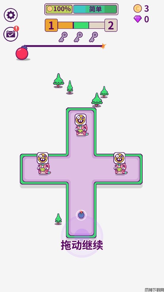3、并且按住屏幕可减慢时间,在子弹时间中观察战局,选择改变炸弹的前进路线。