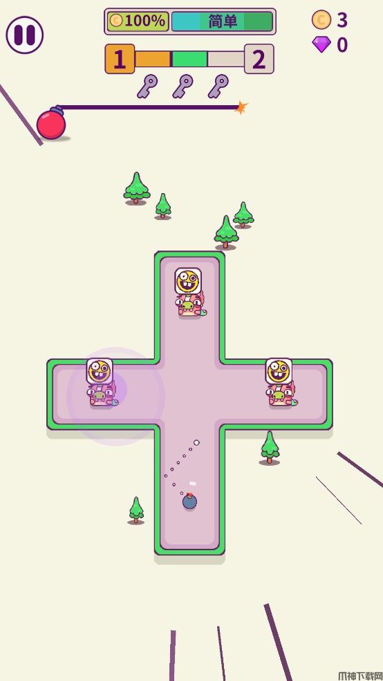 指尖炸弹手机版是一款休闲的动作闯关手游。你需要点击屏幕来释放炸弹,在规定的时间内合理使用炸弹,用炸弹去破坏兔子的围墙,摧毁宝箱。游戏中你所设计的那条最为快速的炸弹路线才是你通关的有利因素,如果设计的炸弹引线不合理,那就会在安全区域直接进行爆炸,你的目标也就无法完成。还拥有超多的道具可供玩家选择使用,躲避关卡里的阻碍以及陷阱,选择最近的途径点燃引线吧。随着关卡的难度增加,引线的时间也会越来越短,关卡中的目标也会越来越多。