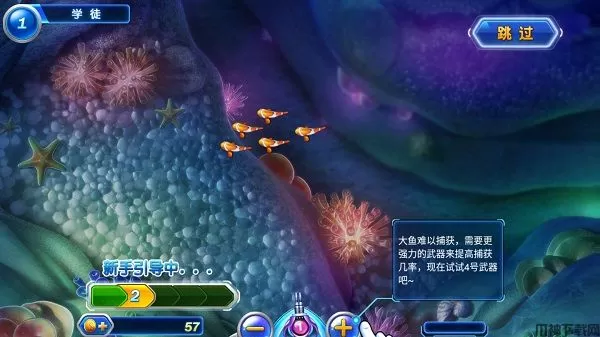 7、打小丑鱼:在小丑鱼钻到炮台下的时候攻击,这样的话,即使玩家没有打中,也可以粘到其他的鱼。