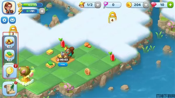 资源不足?开采无尽的石头,树林等等!没有足够的空间?探索岛上的新部分!更多珍宝在等着您:黄金,红宝石,钻石等等。