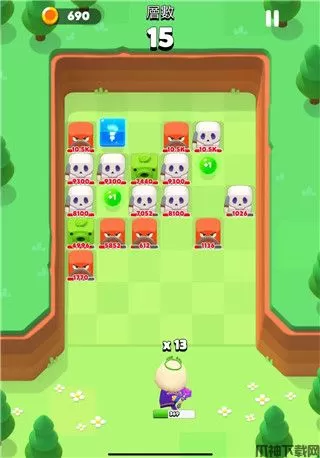 3、来到下回合时,除了生成新的怪物,场上还会出现+1和?方块。只要在碰撞时打中 +1,即可获得一颗全新的魔法球。打中 ?方块,则是能获得技能三选一的机会。这些技能将让你眼前的画面是火花带闪电。