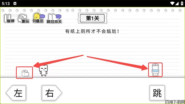 2、游戏关卡玩法简单,玩家需要控制小猫咪拾取纸巾,然后坐在马桶上上厕所即可。