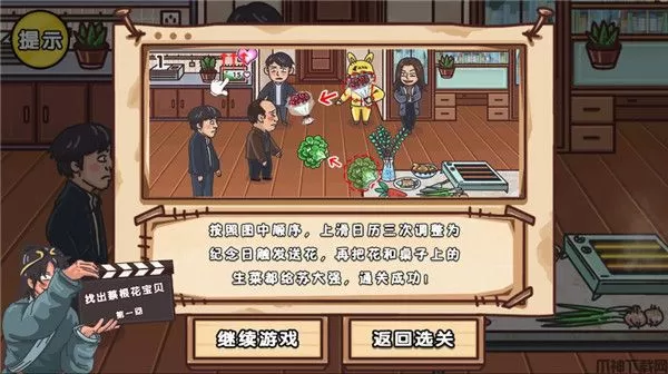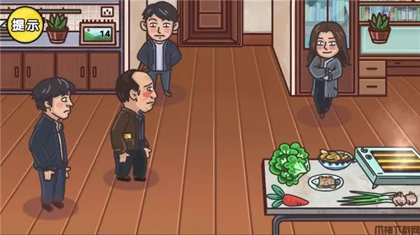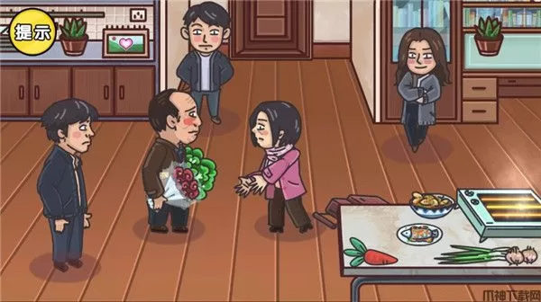 4、不知道的可以点提示,或者查看答案,这里可以按照图中顺序,上滑日历三次调整为纪念日触发送花。再把花和桌子上的生菜都给苏大强。就可以通关成功。