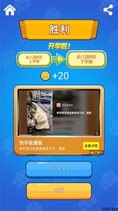 4、胜利的时候,可以直接进入下一关。