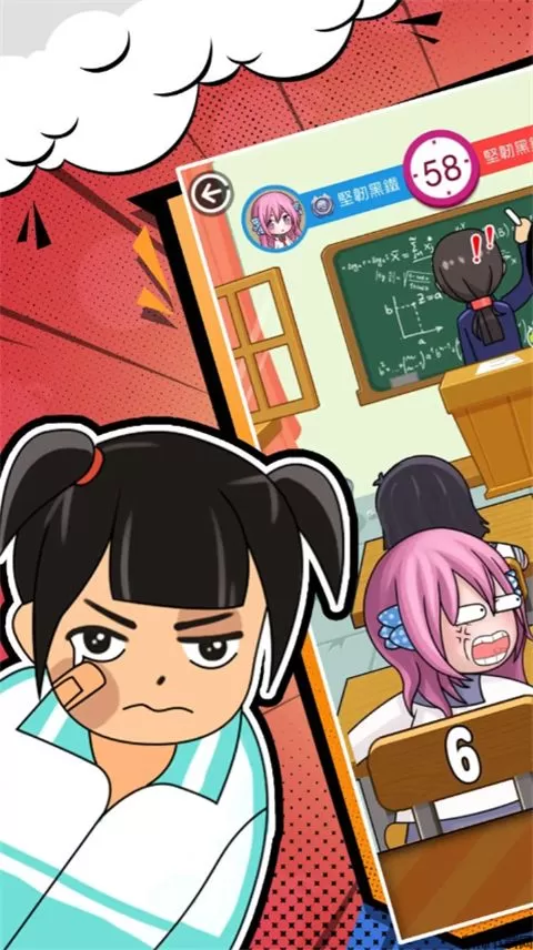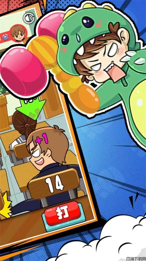 同桌大作战是一款双人对抗竞技游戏。玩家选择模式后选择一个合适的位置,随后点击下面的“打”即可进行游戏,双方拥有相同的血量,你必须在自身血量耗光之前将对方血量打完才能赢得胜利,过程非常考验你的手速,同时还有老师或校长时不时检查,如果被发现,将扣除大量生命值,一定要留心观察四周。同桌大作战官方正版中有各种各样的皮肤,其中涵盖了头像,着装与武器,玩家还可以利用得到的金币升级暴击率与闪避率。