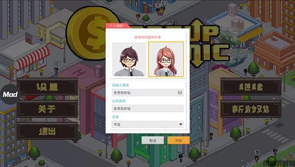 2、点击新游戏,选择你的虚拟形象,并为其创建名字、公司名等