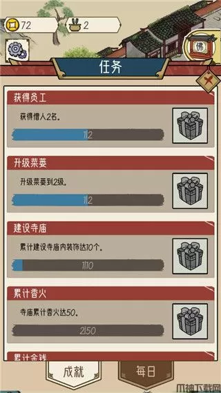 此外,游戏中除了寺庙的模拟修建,布局装饰,还有许许多多玩家向往的田园般生活“种地”,当然了作为和尚主持,你还能外出化缘,期间所征集到的资源不仅可以用来翻修寺庙,还有更多惊喜在等待着你哦~