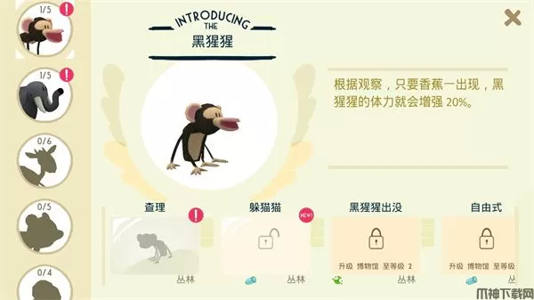 4、游戏中我们的博物馆可以通过升级来扩张展览照片的数量,同时系统还为完美准备了不同的拍照任务,每一个动物都需要拍摄一些固定动作或者姿势的照片,只要完成这些任务就可以获得额外的奖励。