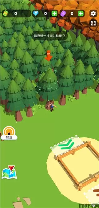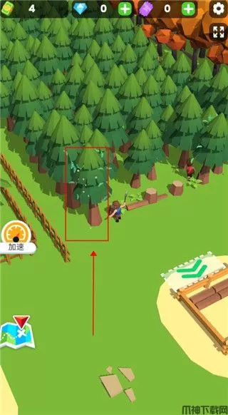 3、然后我们就需要去砍树了,靠近一棵树角色就自动挥砍