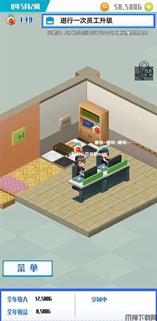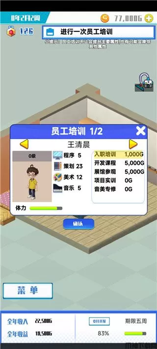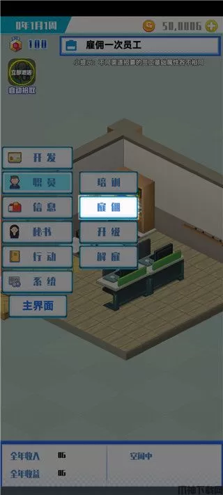 5、你可以对他们进行培训、升级和解雇,当需要新的员工时,点击雇佣进行招募;