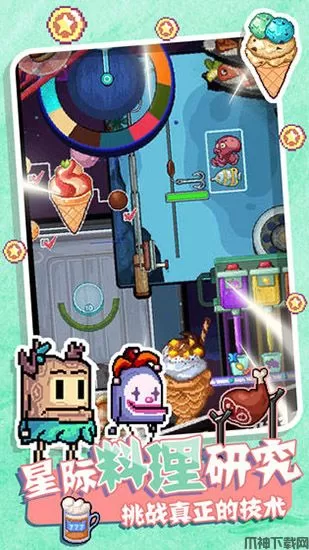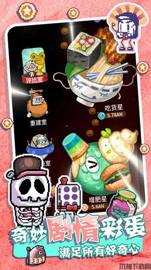 狂点大作战官方正版是一款像素风的美食模拟经营手游,在这里玩家将建造属于自己的美食王国,解锁各种丰富的美食。游戏中,你将通过神明对你的指导,快速的掌握各种制造美食的方法,以及升级你的每个店铺,来增加店铺的收益。