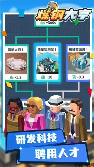 在炼钢大亨游戏的早期阶段,玩家需要建造各种设施来满足工人的日常需求,繁荣商业,从而赚钱.当规模越来越大时,你需要招募精英人才来帮助你,让你的工厂能够更加快速的从开采到冶炼再到销售,赚取更多的钱。你还可以通过研发新的产品,扩大销路,让你的生意红火起来,这样才能赚到更多的收益,感兴趣小伙伴快来下载体验一下吧。