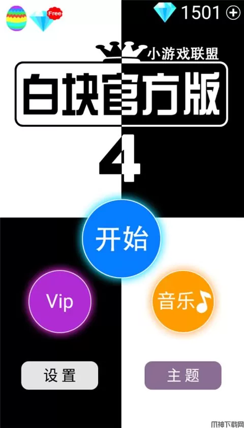 别踩白块4官方版是《别踩白块儿 Don't Tap The White Tile》的第四版续集之作,也就是白块4最终版,该版本支持124中模式(全),免费登陆签到即可领取海量钻石,丰富的音乐,主题,可以满足你一整天的游戏需求。不管你在上下班的公交车上,还是地铁上都可以掏出手机进行娱乐消遣,各个模式非常的带有节奏色彩,只要你拥有完美的节奏感配合你那无比协调的小手,相信你会在别踩白块4上坚持很久的,非常考验你的耐心和协调性哦。这款游戏的规则非常的简单正如他的名字所言不要踩白色的方块,我们只需要踩在黑色的方块上在前进即可,非常的容易上手,也是老少皆宜的一款性价比非常高的游戏。