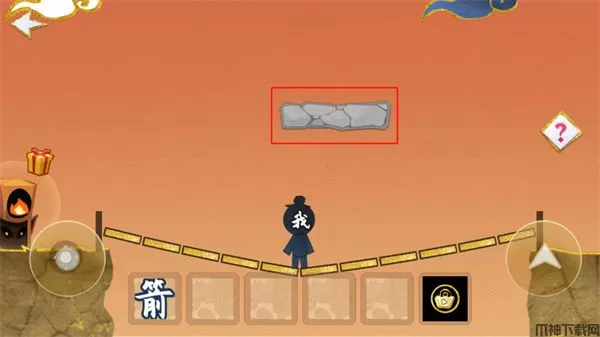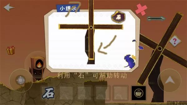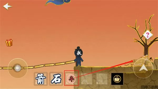 1、双击打开火柴人魔法游戏,进入后羿射日关卡后你需要利用石头来帮助转动来获得箭;