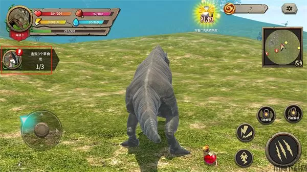 模拟大恐龙游戏还具有剑龙、三角龙、雷龙、棘龙、食肉牛龙等强敌等你来挑战,玩家需要通过完成游戏左边的任务,玩家可以根据右边小地图中查看到任务目标,将目标击败即可完成任务,完成任务还会获得一定的金币和经验奖励,让玩家的恐龙变得更加的强大。