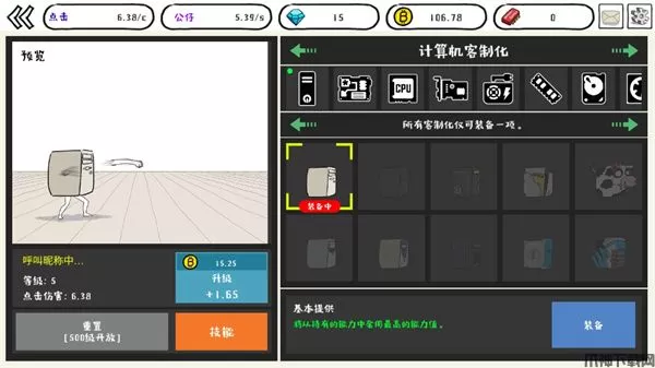 妖怪计算机手游中玩家通过打败各式各样的怪物来赚取升级的金币,升级计算机来发挥更加大的性能,完成成就任务。妖怪计算机手游内还可以收集美少女、机器人和科幻武器等,使用电脑去击败比特币怪兽,赚取金钱不断升级自己的配件,画风不错,人物的动作表情都看起来很滑稽,有点恶搞,玩起来的时候是非常魔性,能让人轻松愉悦的休闲游戏。有兴趣的玩家不妨来下载体验吧!