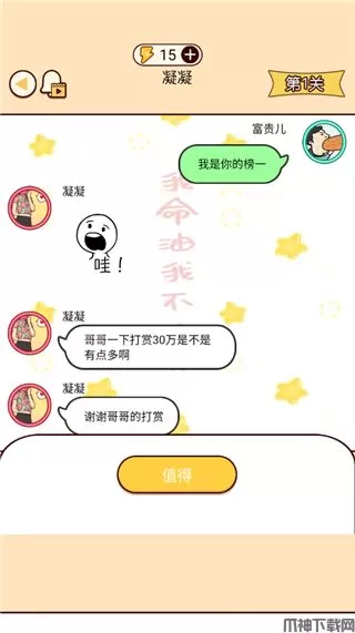 富二代微信模拟器官方正版是一款非常有趣的魔性文字对话游戏。在富二代微信模拟器游戏中,你会面临2个选项,不同的选项将引导你朝向不同的结局,根据关卡的关键词来判断你是否成功。
