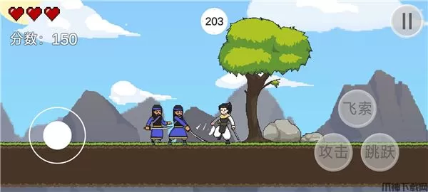 5、根据地形进行操作,遇到断崖、树木可以通过飞索进行爬越