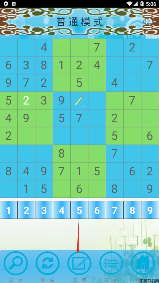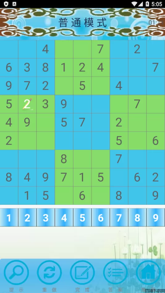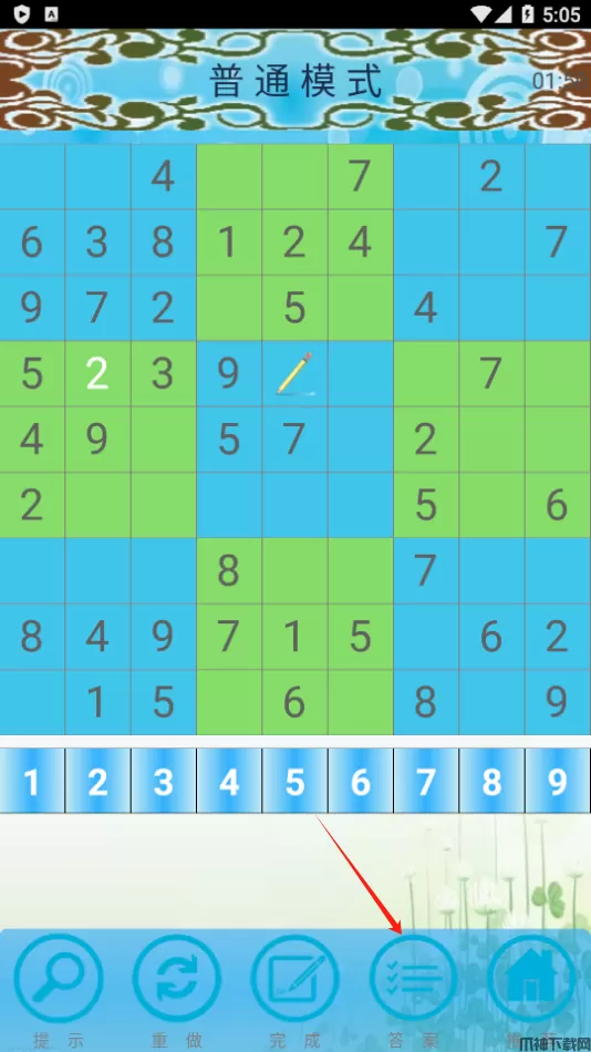 4、玩家还可点击右下角的【答案】按钮,这时候会显示数独的正确答案并全部填入。