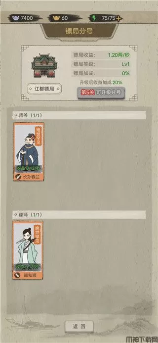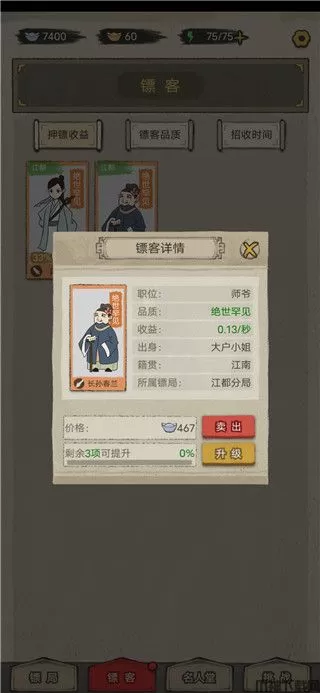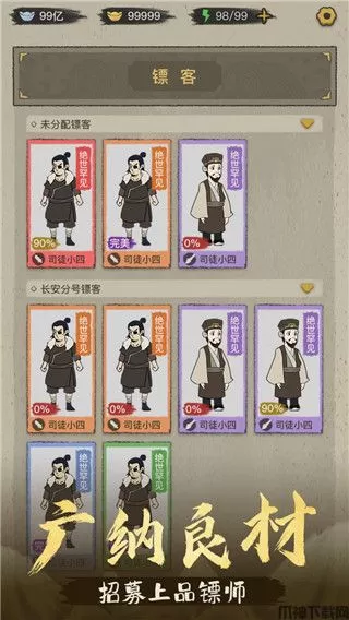 培养镖师、师爷,提升人员的经验和武力等技能,解决各种刁钻问题,解锁更多镖局分号。