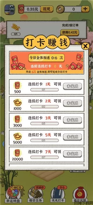1、首先是打卡赚钱,通过打卡可以获取元宝