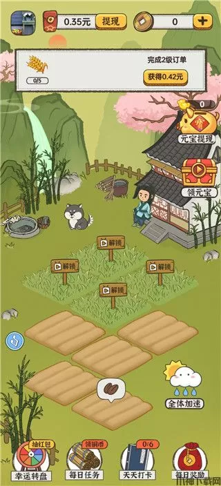 江南小生活游戏红包版是由青岛点牛网络技术有限公司开发的一款可以领红包的模拟经营游戏,玩家在游戏里可以体验真正放松的农村生活,可以种植各种蔬菜水果,开塘养鱼,每种作物都需要除草、杀虫、浇水、施肥等,增添了更多的乐趣,是一款非常休闲放松的经营游