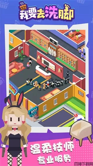 我要去洗脚是一款卡通风的模拟经营游戏,玩家不用担心因为金币资源匮乏的诸多问题。只需合理的经营足浴店,通过各种手段来吸引许多顾客,成为成为知名的洗脚大亨,打造属于自己的五星级洗脚城!