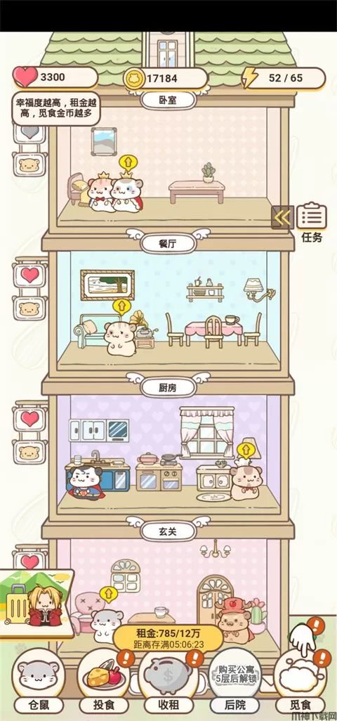 仓鼠公寓官方正版是一款模拟经营养成的游戏,游戏拥有超萌可爱的游戏画风,趣味性十足的玩法,让人体验感十足,游戏的任务也十分丰富。