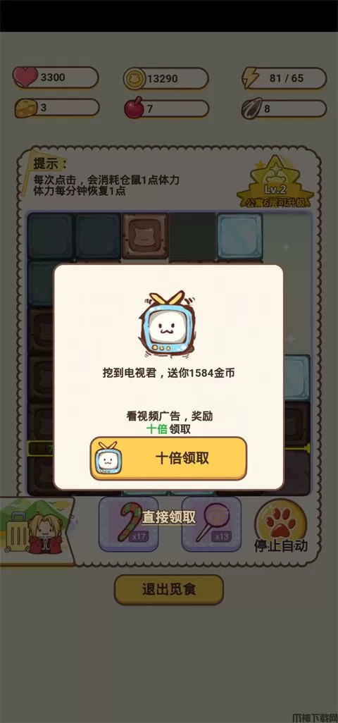 没必要每一个广告都看,或者跳出来的租金广告,双倍奖励就看一遍。如果是在这个游戏上花费时间较多的玩家,可以忽略我这条,毕竟花时间投入的话,不可能坐在那边就盯着小仓鼠看的,而金币只能靠时间积累,觅食也需要时间恢复。