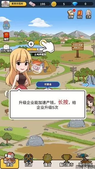 3、建设完成后,我们需要让土鸡场高效运作,这样才能得到更多的资金,所以接下来玩家可通过升级企业来加速制造,点击或者长按即可升级。
