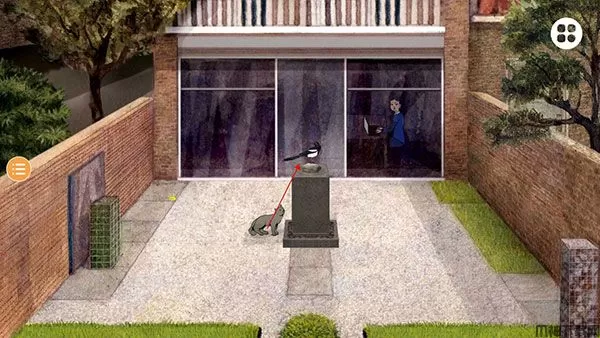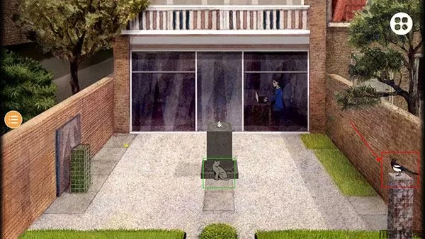 6、最后点击喷泉上的【猫】,女人把猫抱到围墙上,本章节通关。
