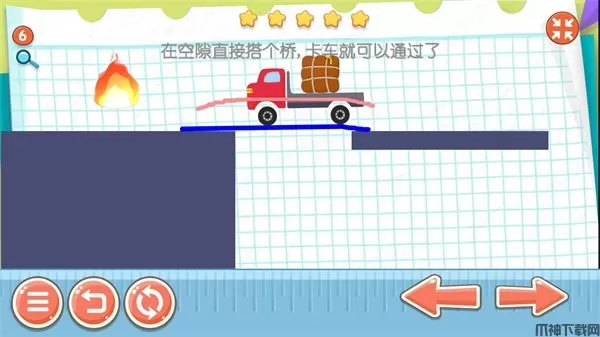 游戏中玩家要想办法移动卡车,并成功引爆炸药,什么路径最高效呢?那就看你怎么画了。画出合适的路线,让卡车沿着路线运送方块到指定区域。你能将炸药包成功引爆吗?听说只有3%的人能一次通关!快来接受最强大脑挑战吧!年度最考验脑力的游戏来了,你还在犹豫什么?赶紧免费玩物理解谜益智游戏,让你的智商永远在线!对于绘画没有特别高的要求,只需要会用笔画线就行了,通过的你的想象力来过关,让游戏中的炸药包开始爆炸,完成游戏中的任务吧。