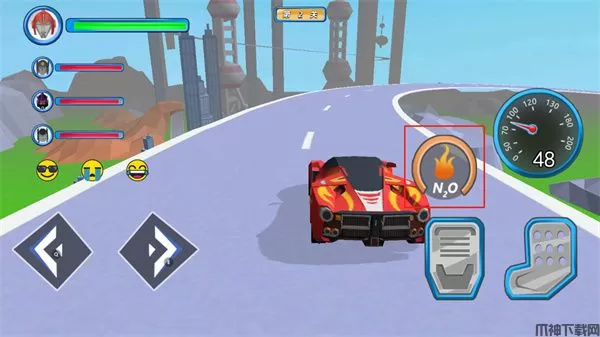 3、点击左下角的按钮来控制赛车的方向;