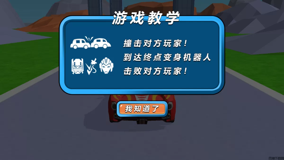 2、赛车形态撞击他人会掉血,到达终点会变成机器人,击败敌人即可通关;