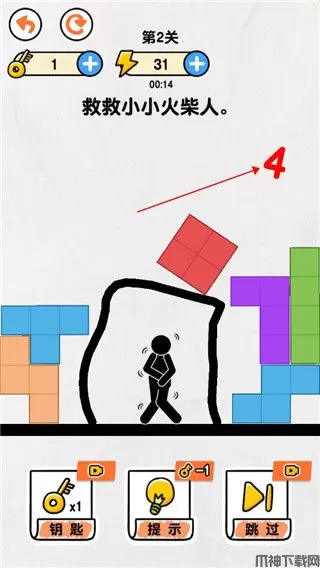 画线救救火柴人4是一款非常考验思维能力的益智类游戏,游戏以经典的火柴人形象为主体,采用简约的画风,精致的关卡设计,给玩家带来全新的闯关之旅。
