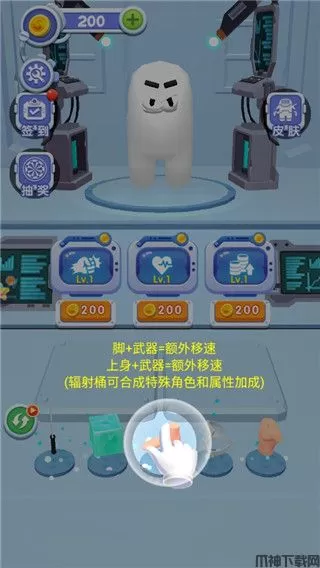 1、下载进入合成太空杀游戏,通过两个部件来进行合成你的角色,不同的选择将获得不同能力的太空人;