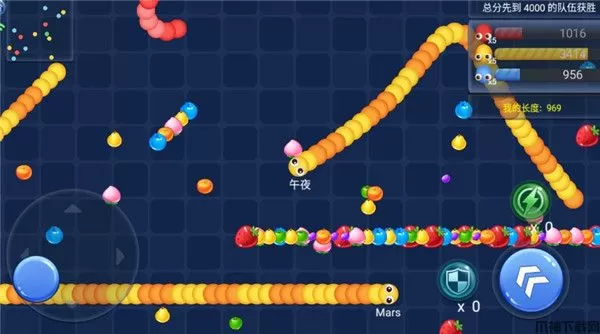 只需要在屏幕中操纵蛇蛇去吃果,去截住其他玩家的蛇头即可击杀,游戏上手简单但乐趣无穷