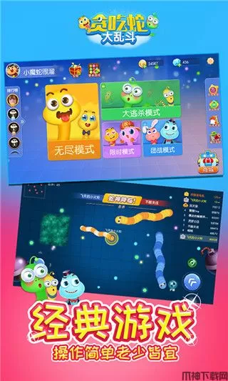贪吃蛇大乱斗单机版是一款趣味十足非常有趣以贪吃蛇为玩法的休闲益智类游戏,有着非常可爱Q萌的卡通画风,画面十分明亮鲜艳,地图内更是铺满了各种五颜六色的水果,能够让玩家在游玩的过程中享受精彩的视觉体验。而且该游戏操作简单,纯单机零流量,没有网络也能够轻松畅玩,且上手难度低,你只需操控着贪吃蛇去吃地图内的水果就能不断变大,在熟悉操作方式后你还可以轻松掌握并使用一些游戏技巧,如神龙摆尾,车头超车等犀利微操来击杀敌人,乐趣十足,相当好玩。而在玩法上制作组还在经典贪吃蛇玩法上开发了超多的模式,如经典魔性的无尽模式、合作取胜的团战模式以及热门的单人吃鸡模式,全都十分有趣,感兴趣小伙伴们赶快在本站下载这款贪吃蛇大乱斗体验一番吧。
