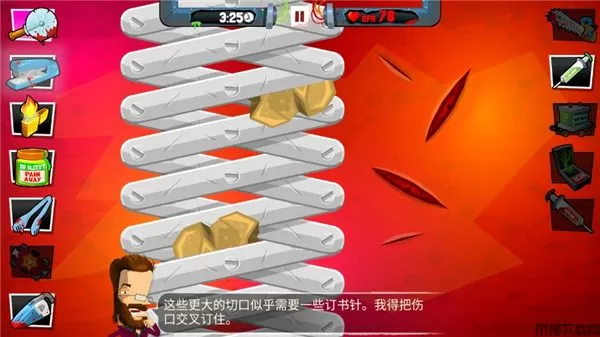 8、游戏采用了关卡模式,每一个关卡都有一个患者,玩家们要成功的完成手术才能进入下一个挑战