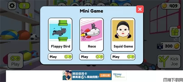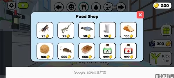 6、游戏内还有着三个独立的小游戏,可用来提升乔的心情值,还可以通过完成这些游戏来赚取金币,并用它们来购买游戏中的物品;
