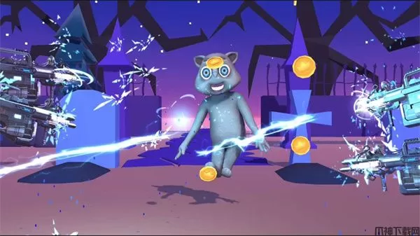 此外,会说话的乔手游的美术采用了3D立体的形式,乔的造型以二头身的比例呈现出来,所有的场景都有着不同的背景与道具,玩具屋里摆满了不同年龄孩子喜欢的各色玩具,墓地里则随处可见墓碑与十字架,傍晚的卫生间里光照阴暗,未知的场景里前景叵测。