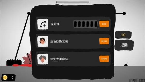4、游戏内击中靶子可以获得金币,金币可以购买保险绳,顾名思义就是在原有的绳子上再加一条,可以叠加最多7条,还可以买皮肤,皮肤都一些热梗,蓝色妖姬的新梗和坤坤的旧梗,不过这两个绘画的不是很精美,都是加了一些象征性的头发而已。