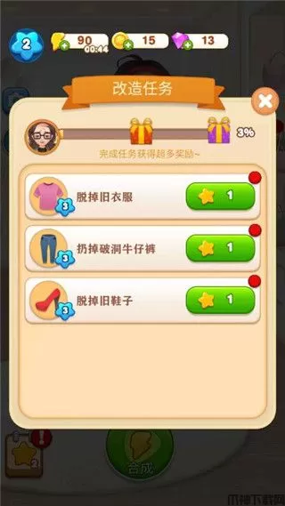 每一个变美道具都是来之不易的,你需通过游戏内置的合成系统,发挥想象力合成出各种道具部件来帮助素人变美。
