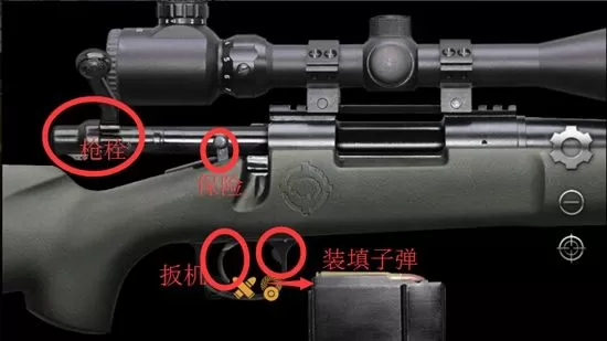 3、狙击枪:狙击枪每一枪都要拉枪栓退弹壳,另外装填子弹比较麻烦,要滑动扳机旁的按钮才会换弹夹,而不是用点击的。
