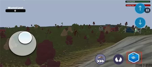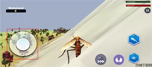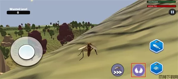 游戏中通过游戏左下角的摇杆来进行移动,双击游戏右下角的翅膀按钮来进行飞行,再通过游戏右上角的上下按钮来调整高度,需要注意的是飞行中还会消耗体力,体力消耗完就无法飞行,玩家需要在地上休息一会儿就会恢复。蚊子模拟器2游戏内当玩家发现目标后玩家可以点击游戏右下角的攻击按钮来进行攻击,当目标移动过快,玩家还可以点击游戏下方的加速按钮来加快移动,需要注意的是游戏左上角是游戏天黑倒计时,天黑后角色不会进行移动,这是玩家进攻的好时机。还