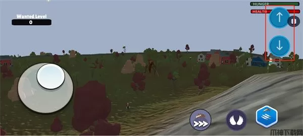 4、玩家可以通过游戏右上角的上下按钮来调整高度,飞行中还会消耗体力;