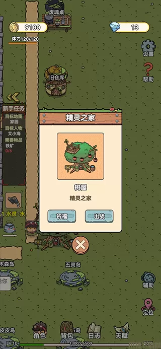 2、期间不要乱花钻石,解锁了精灵树,先去招募一个精灵带着。运气好,招募到一个被动好的,帮助不小。这个精灵,到了防守阶段,可以帮助一起战斗。