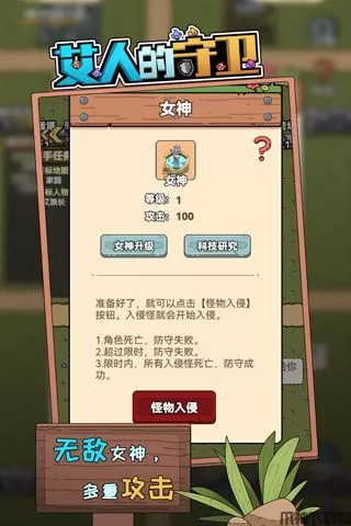 养成内容包括主角、女神和周边建筑三大块,女神科技树解锁比较快,不到一个点就全解锁了。只要资源够,其他功能解锁也是很快的事情。不过这样也就看出了游戏深度有些浅,后面的战斗需要筹备大量资源才能防守成功,资源采集和养成的过程大于战斗时长。